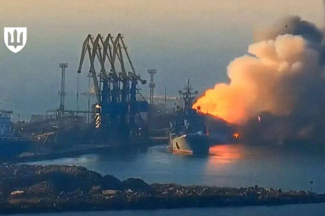 Один із найсучасніших кораблів ЧФ рф (введений у стрій у 2022 році) був атакований зграєю морських дронів поблизу Керченської протоки. Внаслідок кількох влучань у борт судно отримало критичні пошкодження та затонуло.