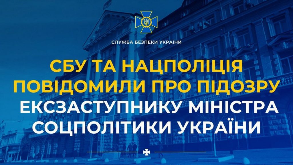 Служба безпеки та Національна поліція повідомили про підозру колишньому заступнику Міністра соціальної політики України, який зараз є чинним радником діючого Міністра.