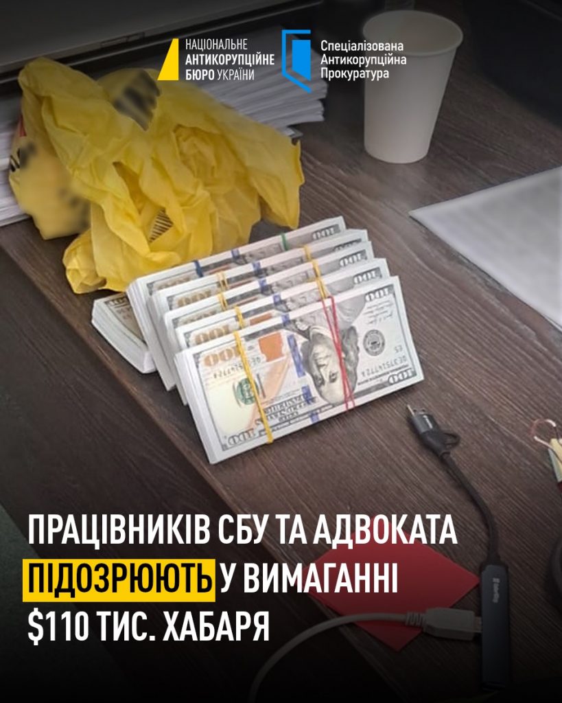 Головна / Вимагання $110 тис. хабаря: працівникам СБУ та адвокату повідомили про підозру